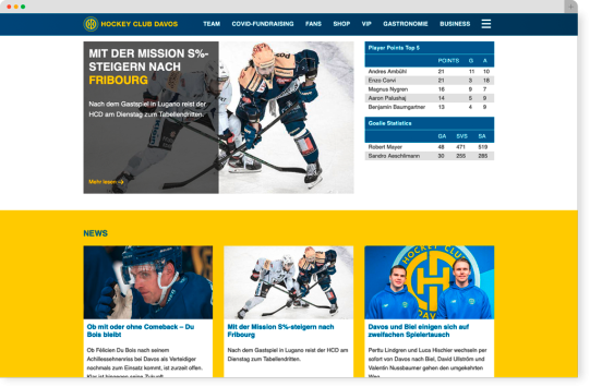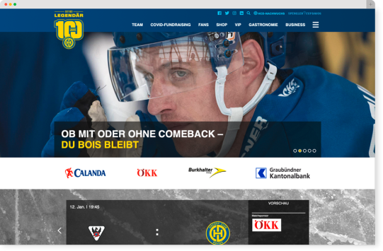 Legendär seit 1921. 100 Jahre Emotionen, Siege und Niederlagen. Rechtzeitig zum 100-Jahr-Jubiläum des Hockey Club Davos gestaltete Stilecht den Webauftritt des Traditionsvereins. In Zusammenarbeit mit soul.media konnte die Webseite vor der Saison 2020/21 online geschaltet werden.