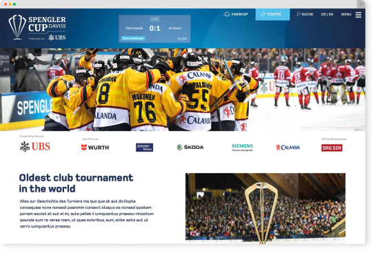 Für das traditionsreiche Turnier in Davos, den Spengler Cup, haben wir die Website neu gestaltet.
